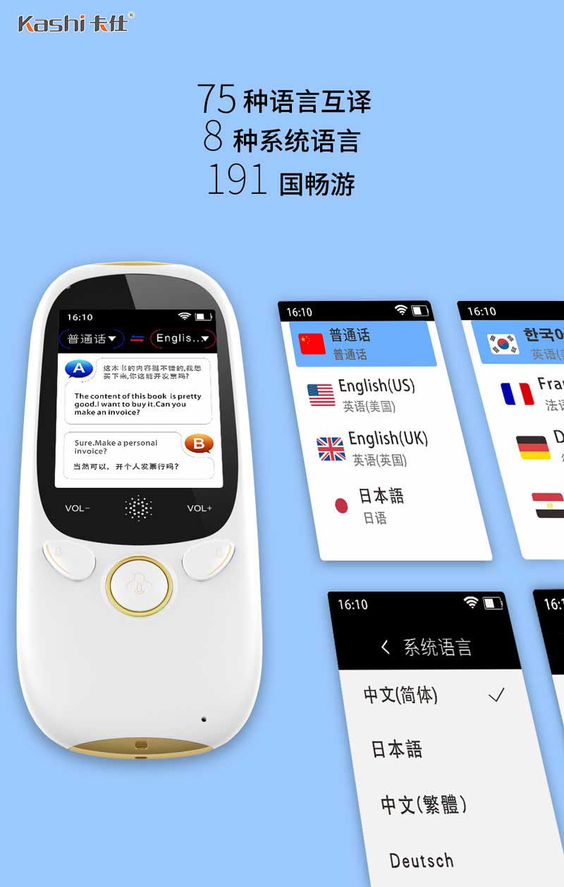 同步語(yǔ)音翻譯機(jī)T10,多國(guó)語(yǔ)言同步語(yǔ)音-卡仕